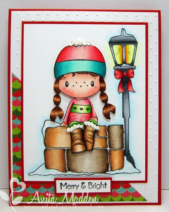 Other: Copics, Caran d'Ache and Prismacolor pencils, Gamsol, Glossy Accents, Liquid Applique, MS border punch, seam binding, MFT hemp cording, jingle bell, pearls, Impression Obsession snowflake die, CC Designs Cutter snowflake die